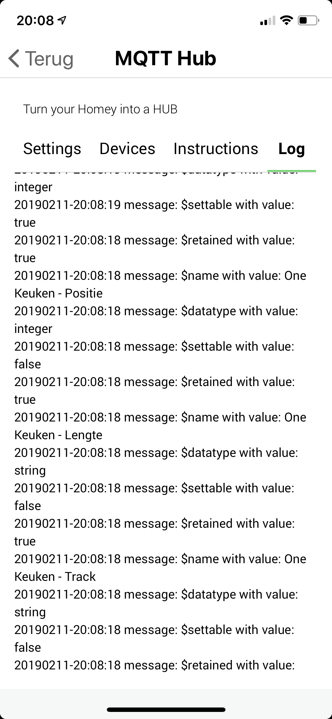 This logging is with hub version 2.04 beta.