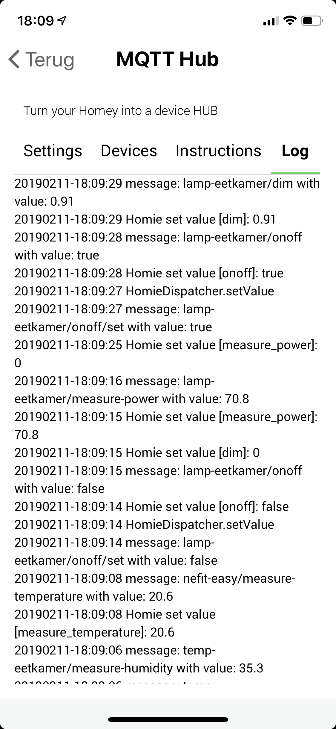 Homey: 2.0.2, Hub app: 2.0.6, Client app: 2.2.1, Mosquitto broker: 1.5.5, openHAB: 2.5.0.M1