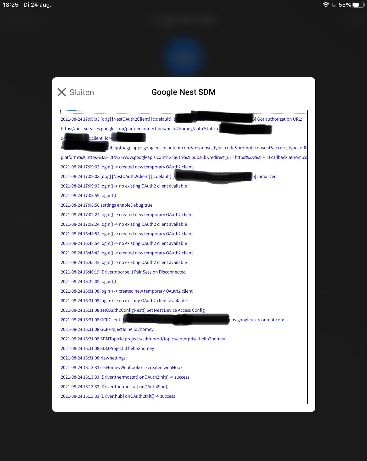 Ik heb alles al een keer weggegooid (SDM-app, GCP-project en Device Access) en ben weer opnieuw begonnen, maar toch lukt het nog niet.