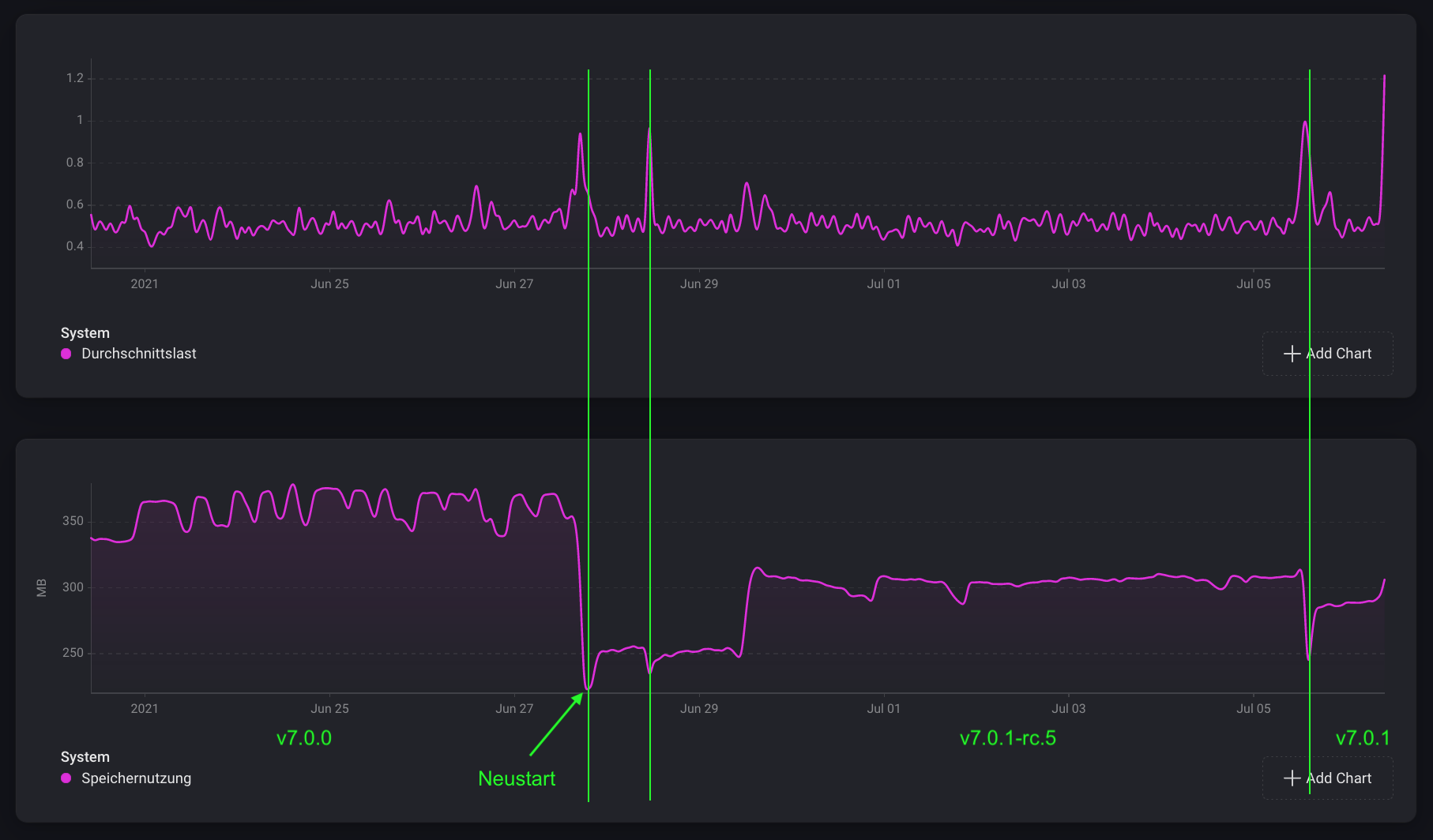Ich bin gespannt Ralf. Bei mir weiterhin eine Auslastung um die 200 MB. Kein Reboot bisher.