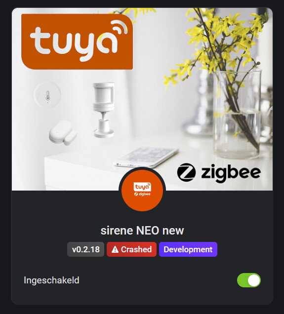 Tried restarting several times, tried to install the sirene as a unknown Zigbee device first, restarted Homey, and tried using it without the Tuya app (maybe some interference). No luck, keeps crashing immediately.