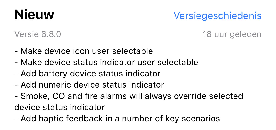 The update release note for iOS (Apple):