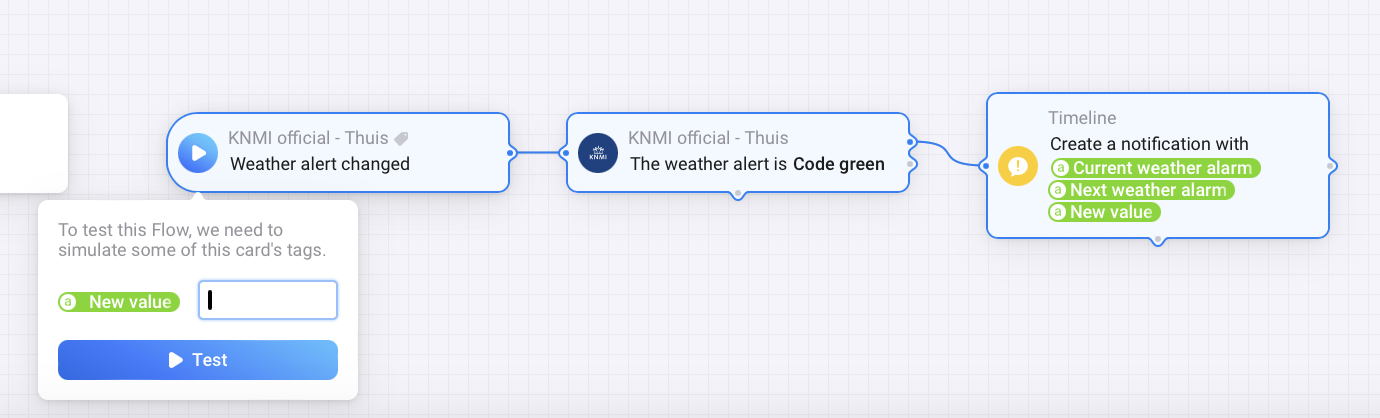 Heeft een deel van jouw flow geen verbinding met de trigger kaart dan even wachten voor je de “naamtag” waarde uitleest.