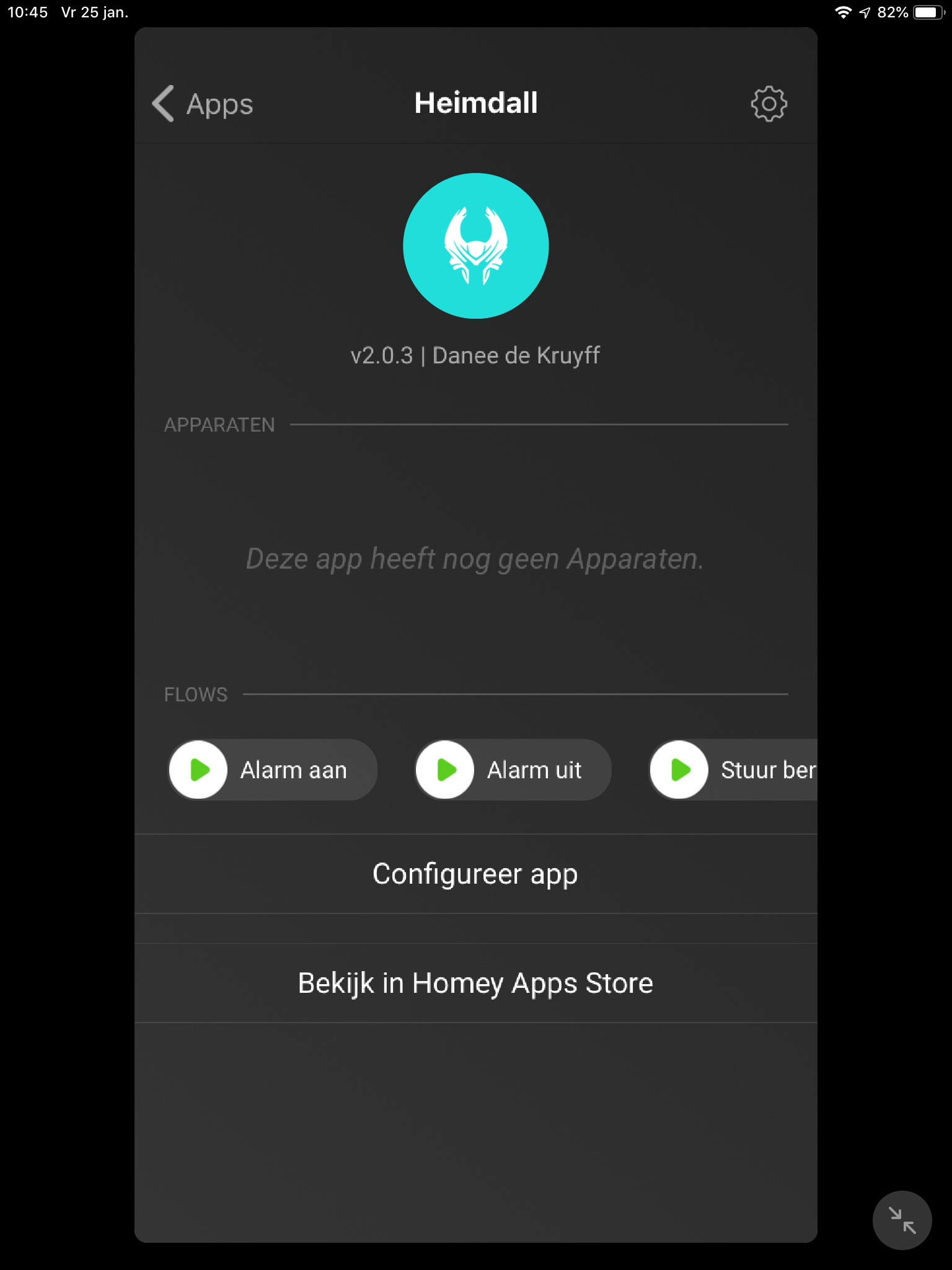 Add devices alarm and mode just like other devices using plus sign on devices screen,then select Heimdall