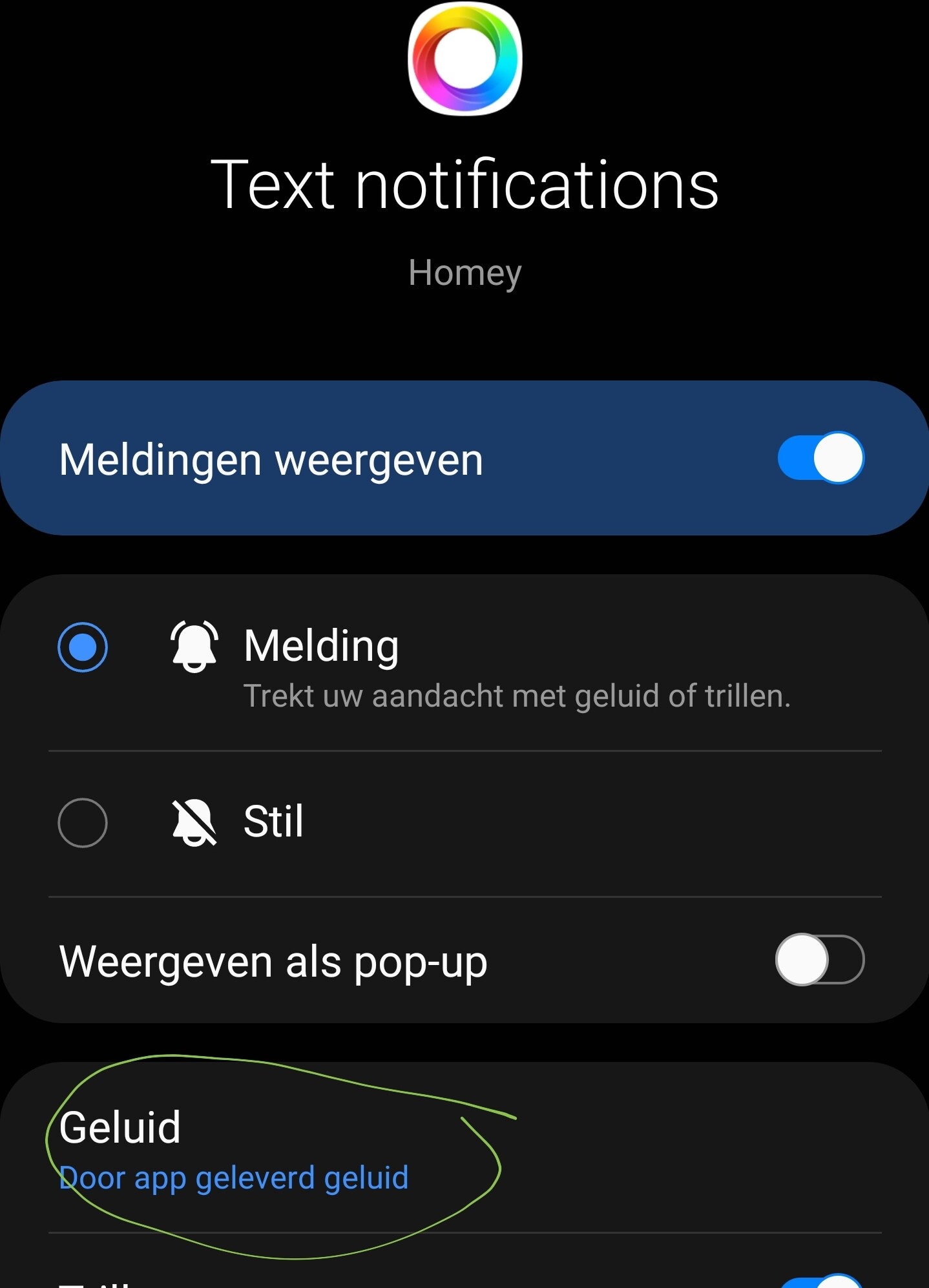 And now you also explained why that sound is different, it is simply because Homey for some reason decided to have that as a “Sound delivered by app” instead of the standard system sound.