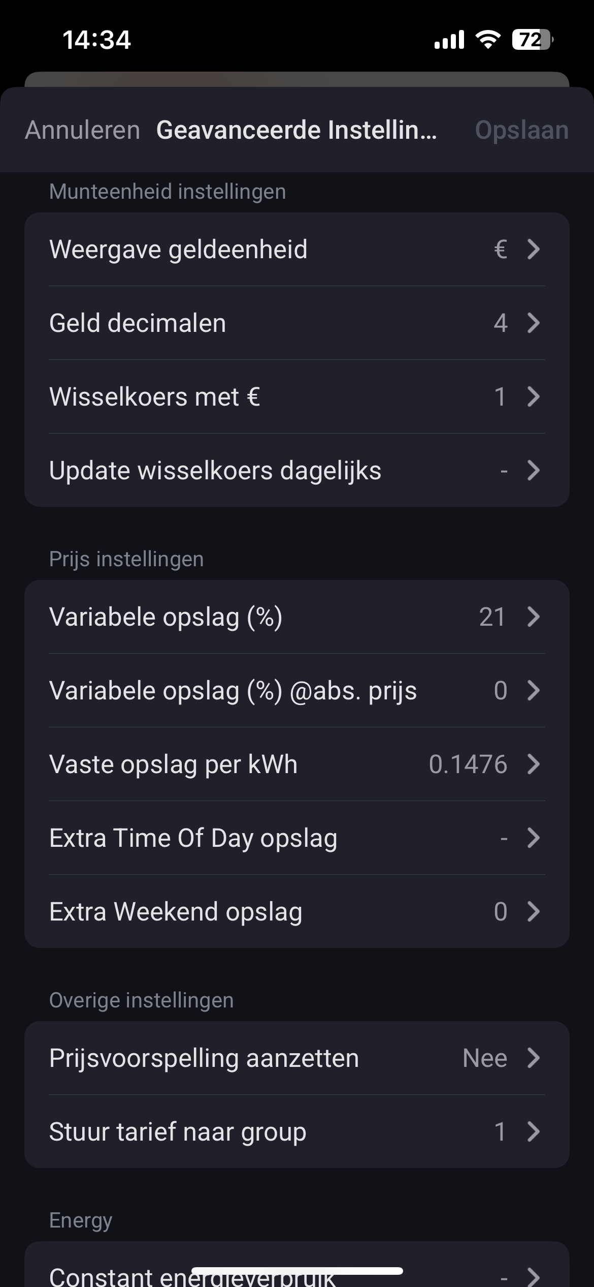 Kan ik die prijzen zomaar aanpassen en hoe weet Homey nu dat ik kwartier prijzen heb en niet uur prijzen? Leuk hoor overstappen, maar dit soort problemen had ik even niet voorzien