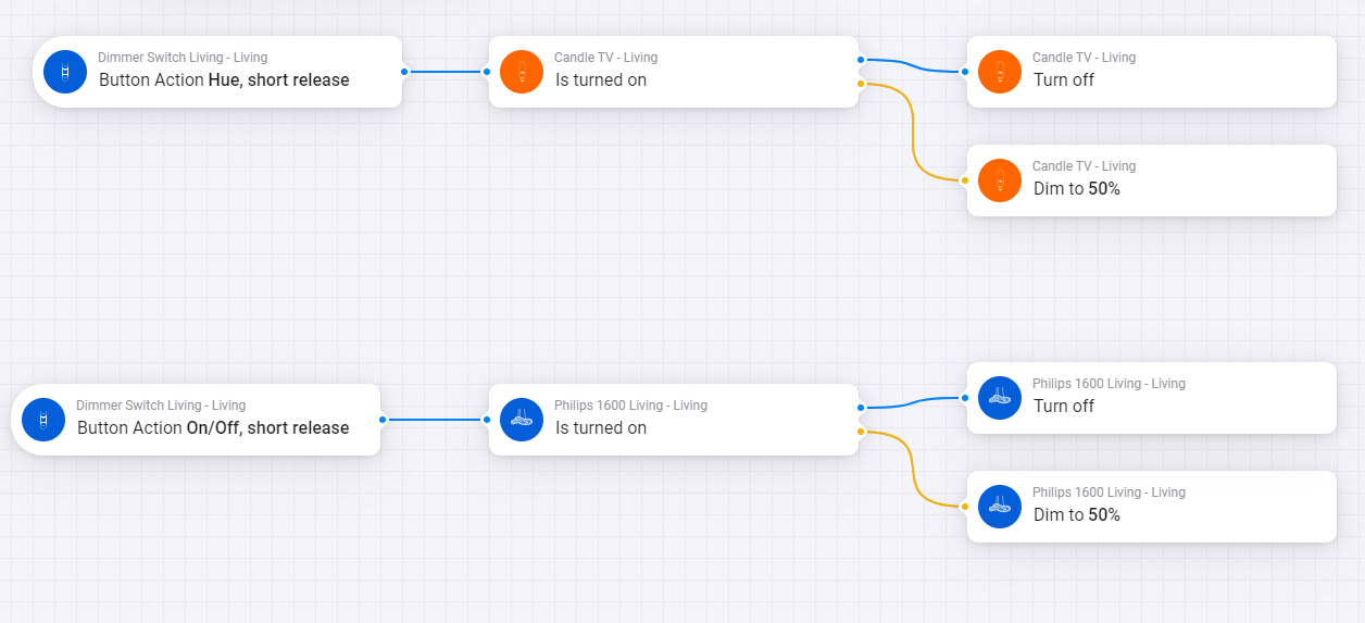 The problem is that when I press the Button on/off (short release) that only control the Phillips Bulb2, it is also switch on the Ledvance Bulb 1 , and there is not an associations between those two. And I disabled all others flows to be sure. I reseted the app, I used another similar switch, nothing…the same weird stuff.