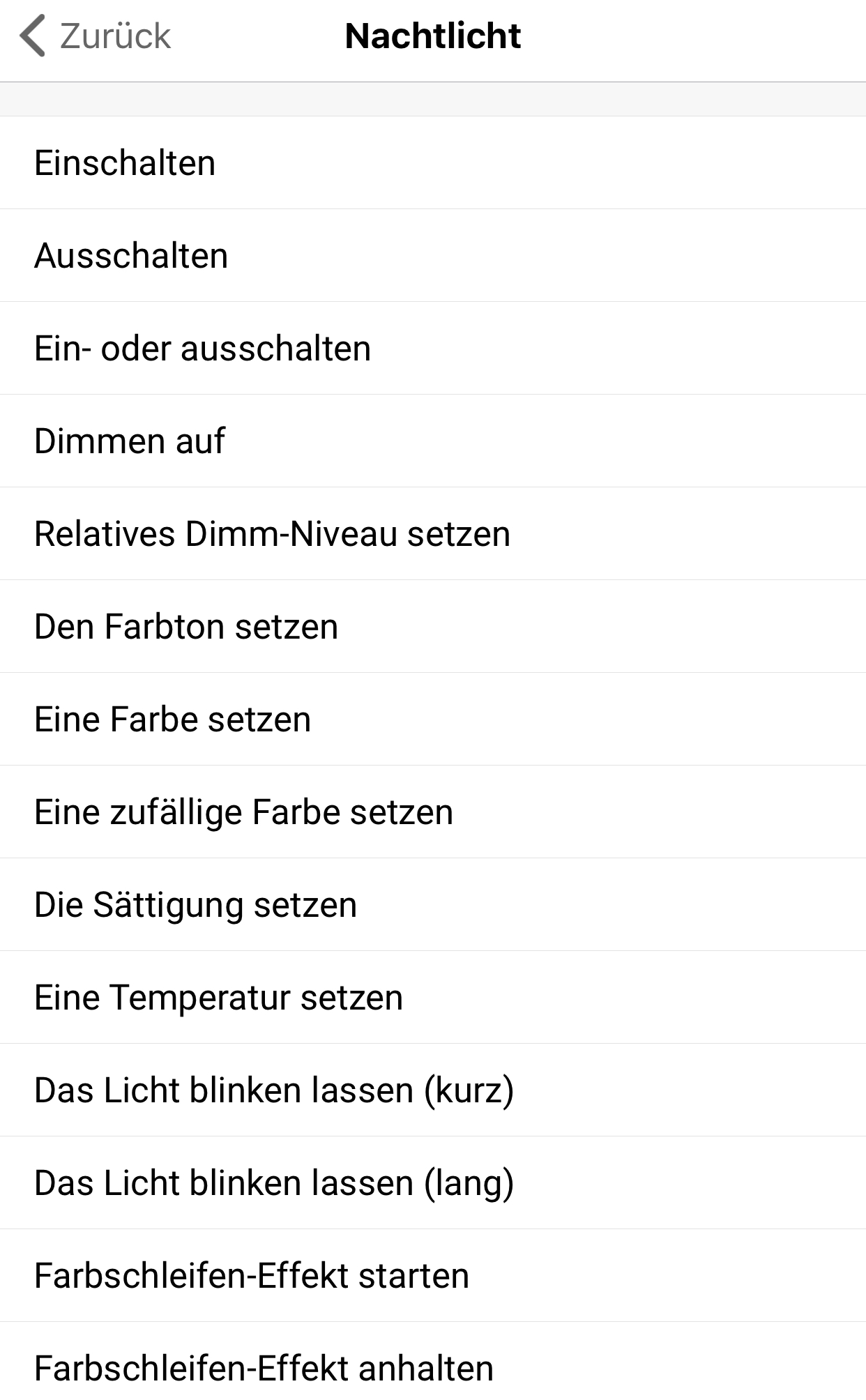Das steht Dir zur Verfügung wenn Du die Hue App als Aktion auswählst.