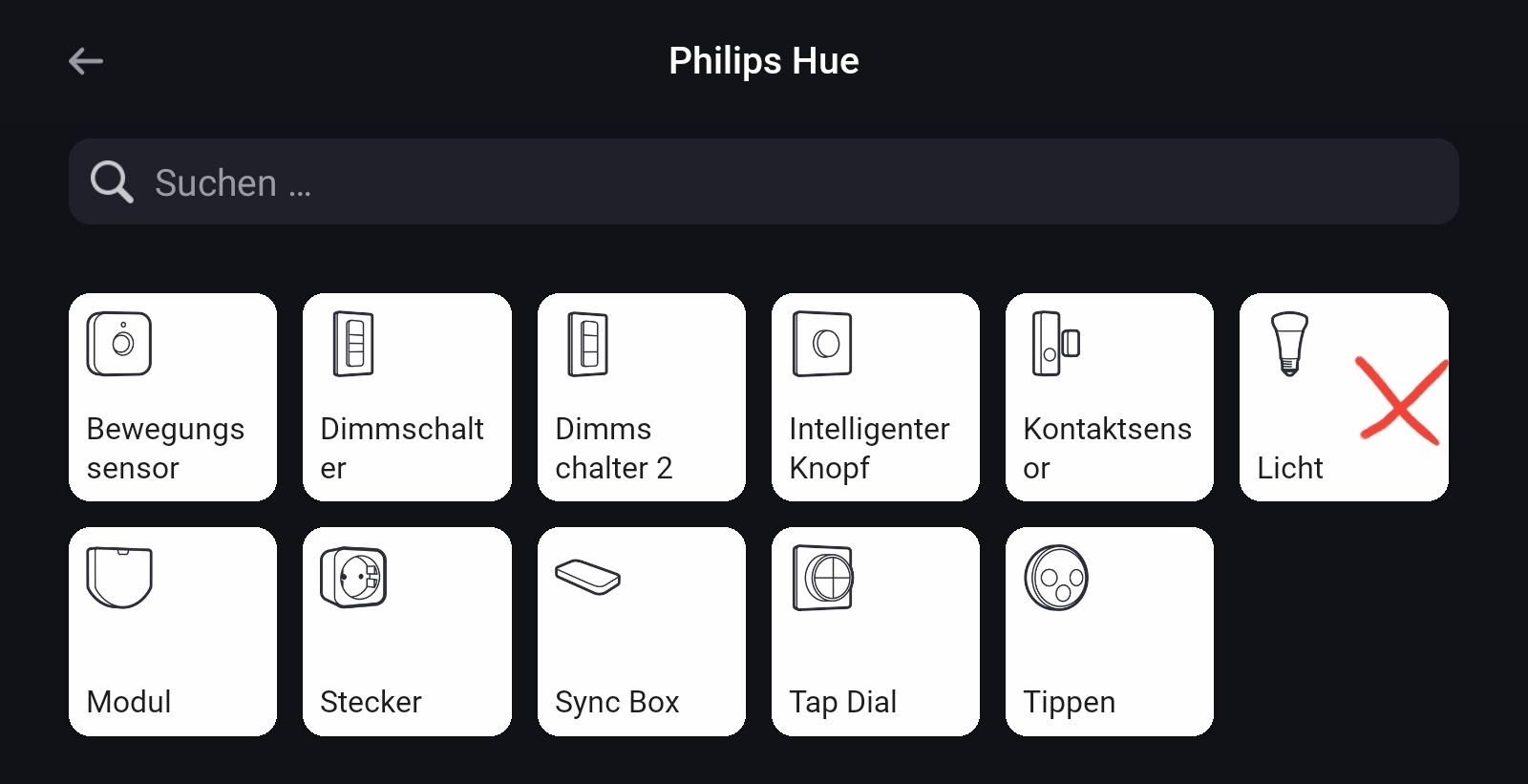 ich hab’s auch mit der Philip Hue (ohne Bridge) versucht, nach der Geräteauswahl findet er nichts.
