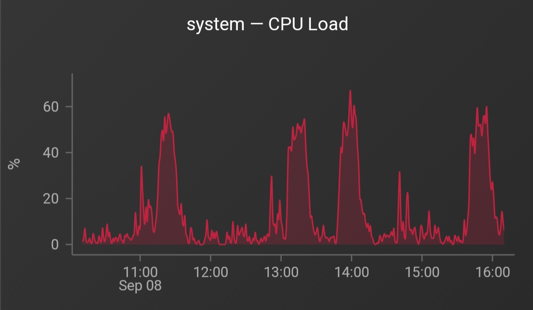 I have my Homey Pro running with only 2 apps and no flows (waiting out the Zwave bug before migrating…), so it is doing absolutely nothing. But I see these 2-hourly CPU load spikes as well.