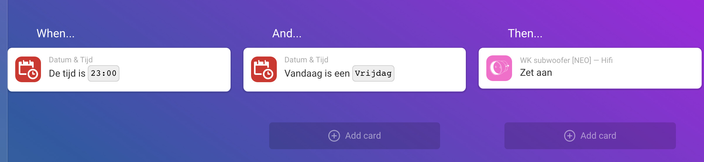 Zet dan in de DAN nog een tweede kaart om de plug weer te schakelen, maar met een vertraging van 16 uren