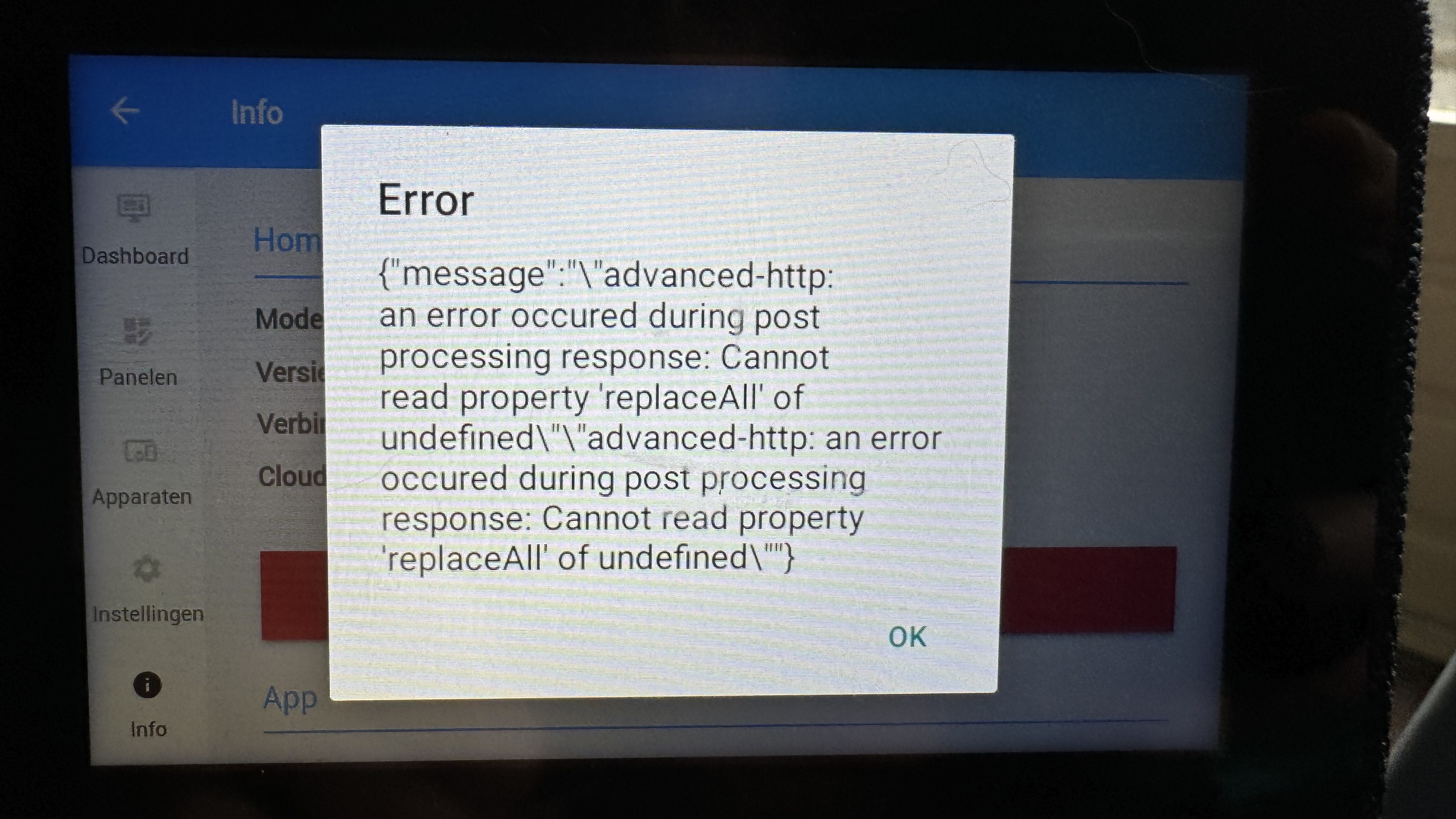 Still the same issue. Notisched that when I go to info in the app it is giving an error message. And the app version is undefined. Maybe this helps.
