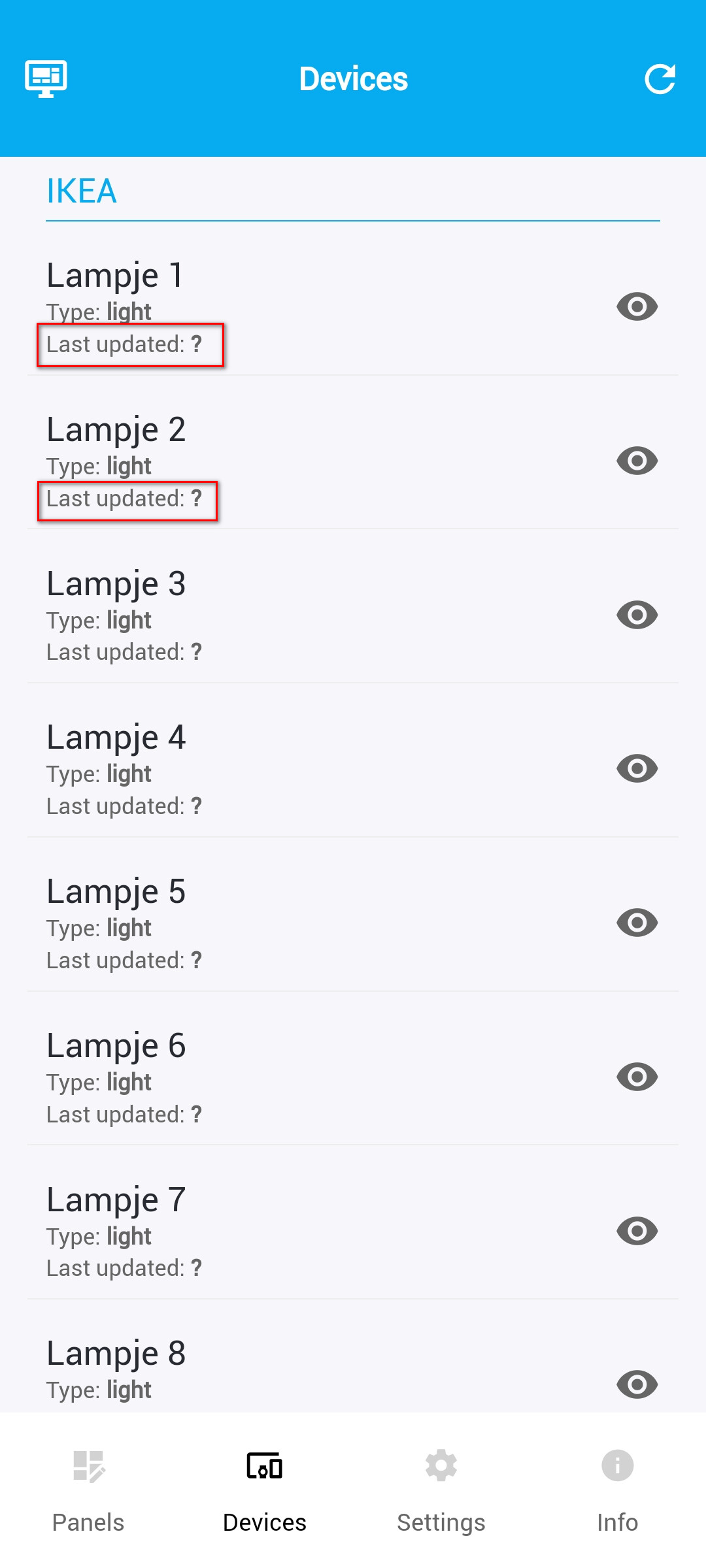 The capabilities are visable, only ‘last updated’ not. And on the panel there is no auto refresh of the shown value. When you switch to another panel and back, the values are updated.
