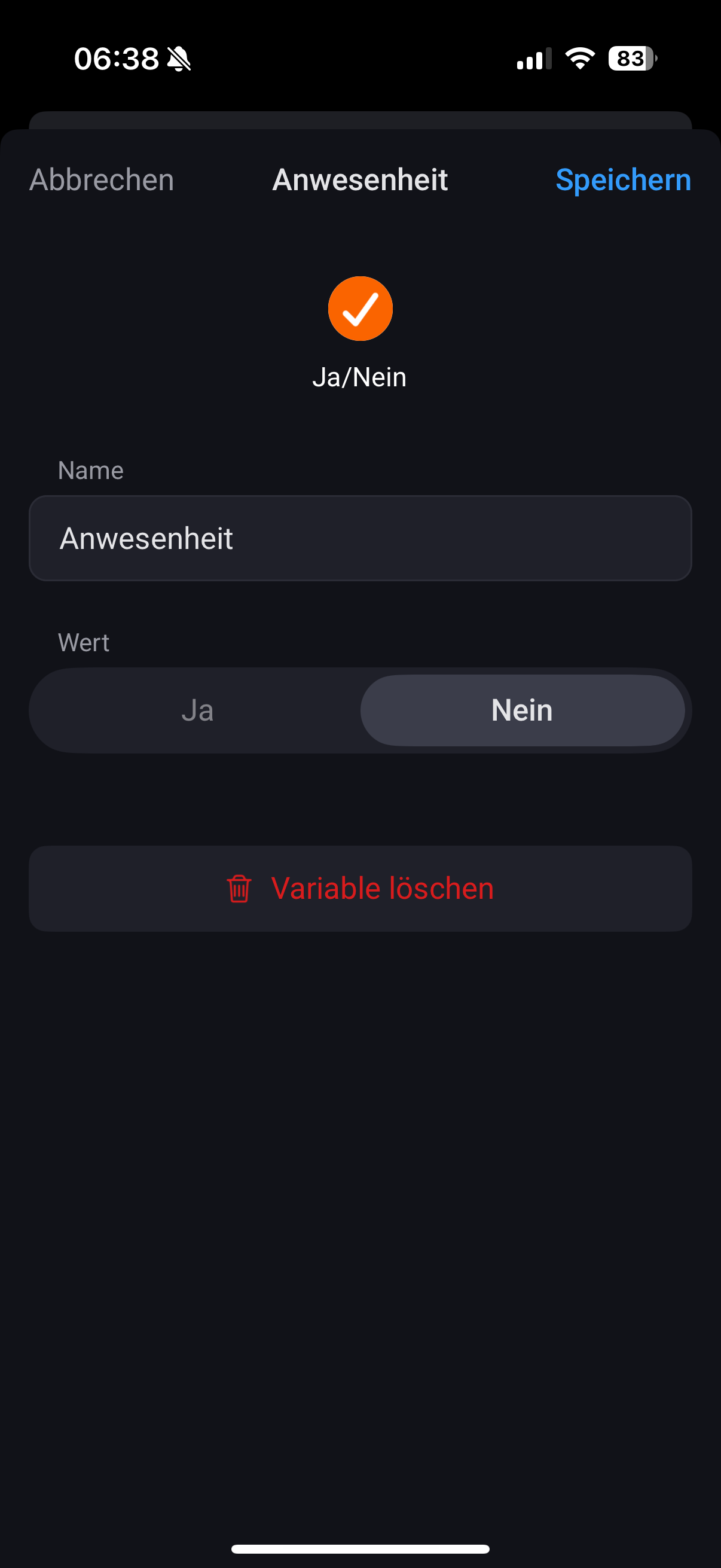Dein Tag ( Eingeschaltet) in der Logik-Karte im Bereich Und… entspricht ja auch nicht Deiner Variable Anwesenheit (siehe mein erster Flow). Dieser Tag gehört vermutlich zu irgendeinem Gerät.