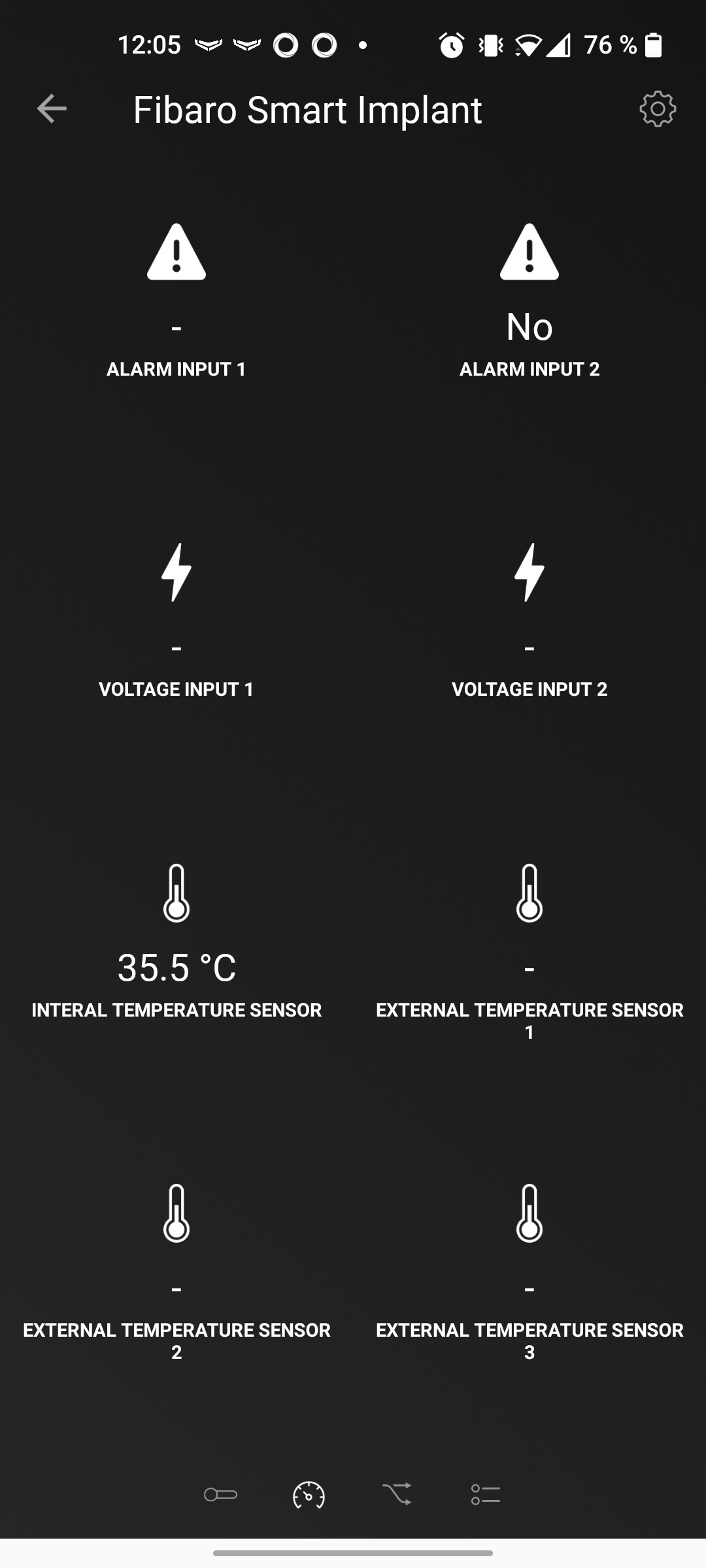 Ajouter votre Fibaro Smart Implant à Homey. Si l’ajout a bien fonctionné, vous devez avoir le 2ème écran suivant pour le Fibaro, avec No dans Input 2 si comme moi, vous avez branché le fil vert du Fibaro (ou No dans Input 1 si vous avez branché le fil jaune)