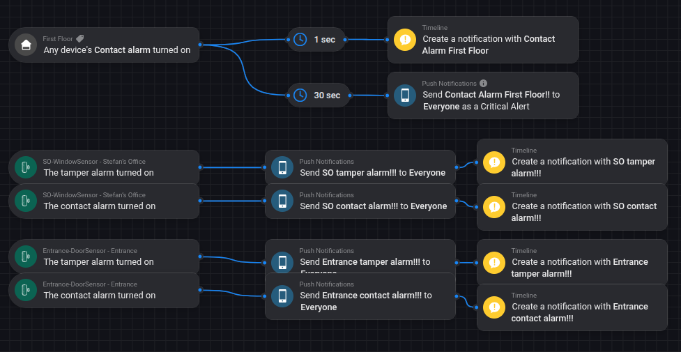 What do you mean by randomly? Assuming both sensors are part of your First Floor zone, any of the contact alarms will trigger this card.