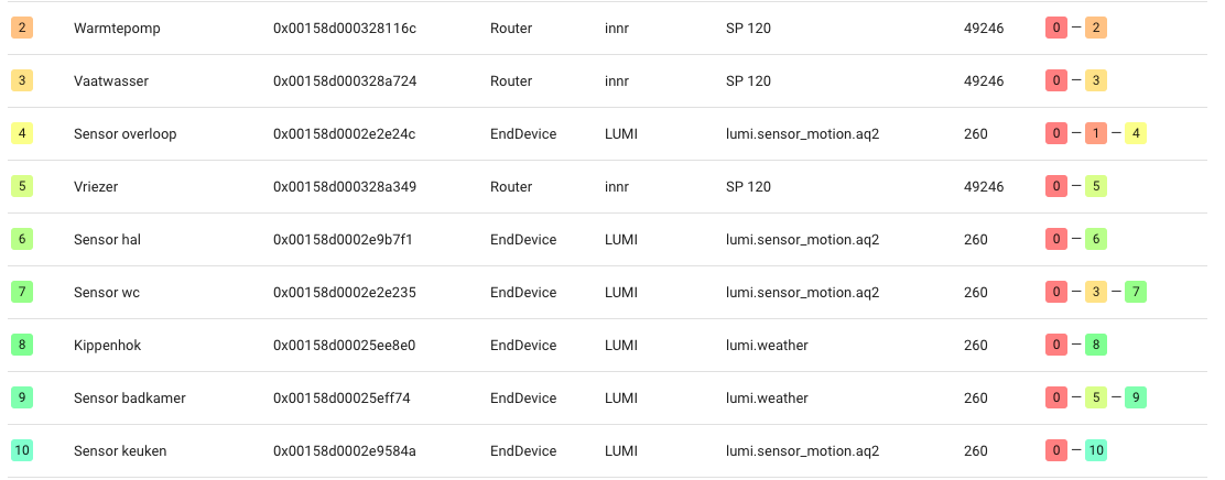 The “route” column should reflect the path between each device and (eventually) Homey. I believe that it may take some time before the route is rendered.