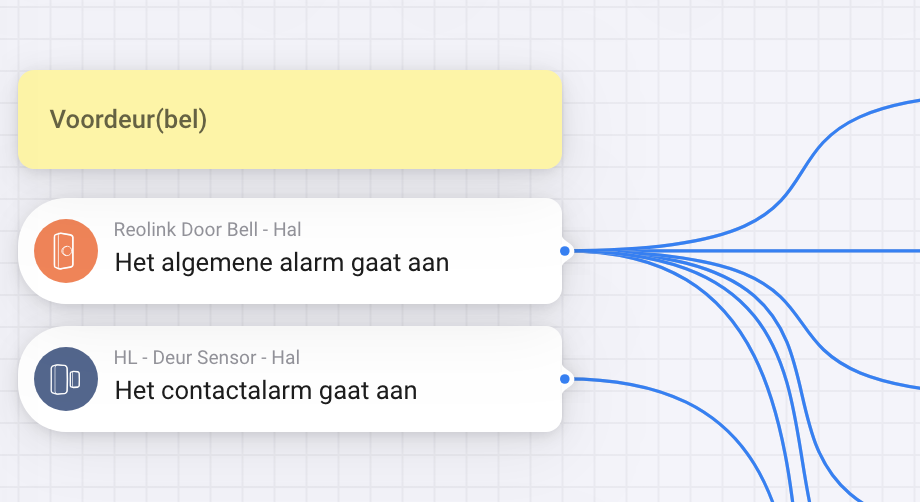 Bij mij werkt het detecteren van aanbellen met de kaart ‘the visitor detected alarm turned on’. Deze wordt actief wanneer iemand aanbelt en zou dus hetzelfde zijn bij de Reolink deurbel als ‘Het algemene alarm gaat aan’.