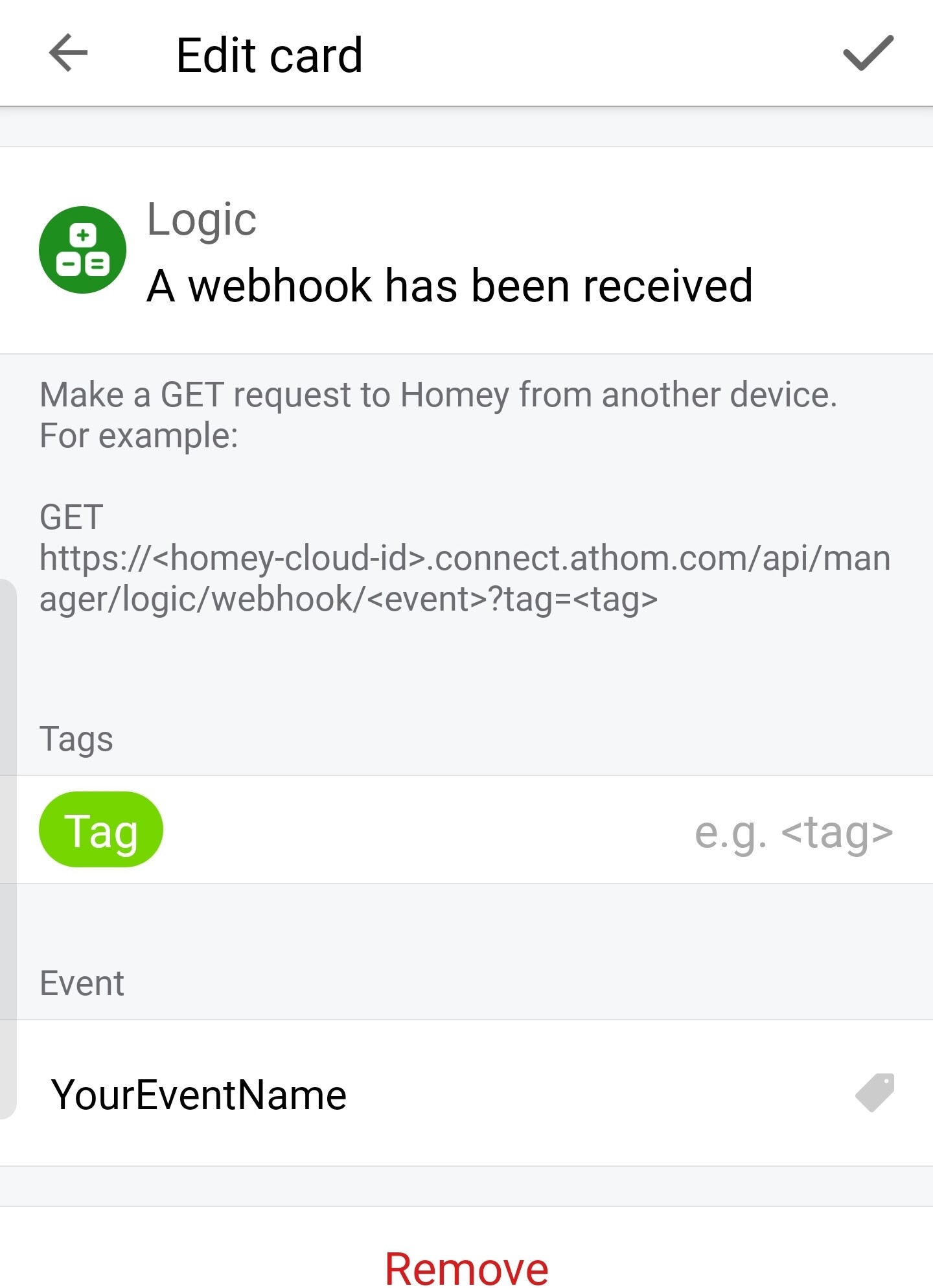 http://homey.ip.address/api/manager/logic/webhook/YourEventName?tag=YourTag