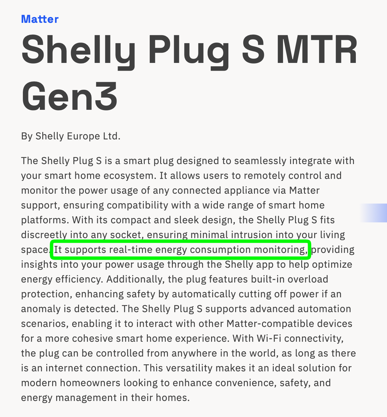 Du siehst mal wieder wie weit Theorie und Praxis auseinander gehen. Der Gen.3 Plug zeigt unter Matter definitiv nichts an. Ich finde das aber nicht wirklich schlimm. Unter Wlan angemeldet, ist das Ding die Zuverlässigkeit in Person. Bei Shelly braucht man Matter nicht wirklich.