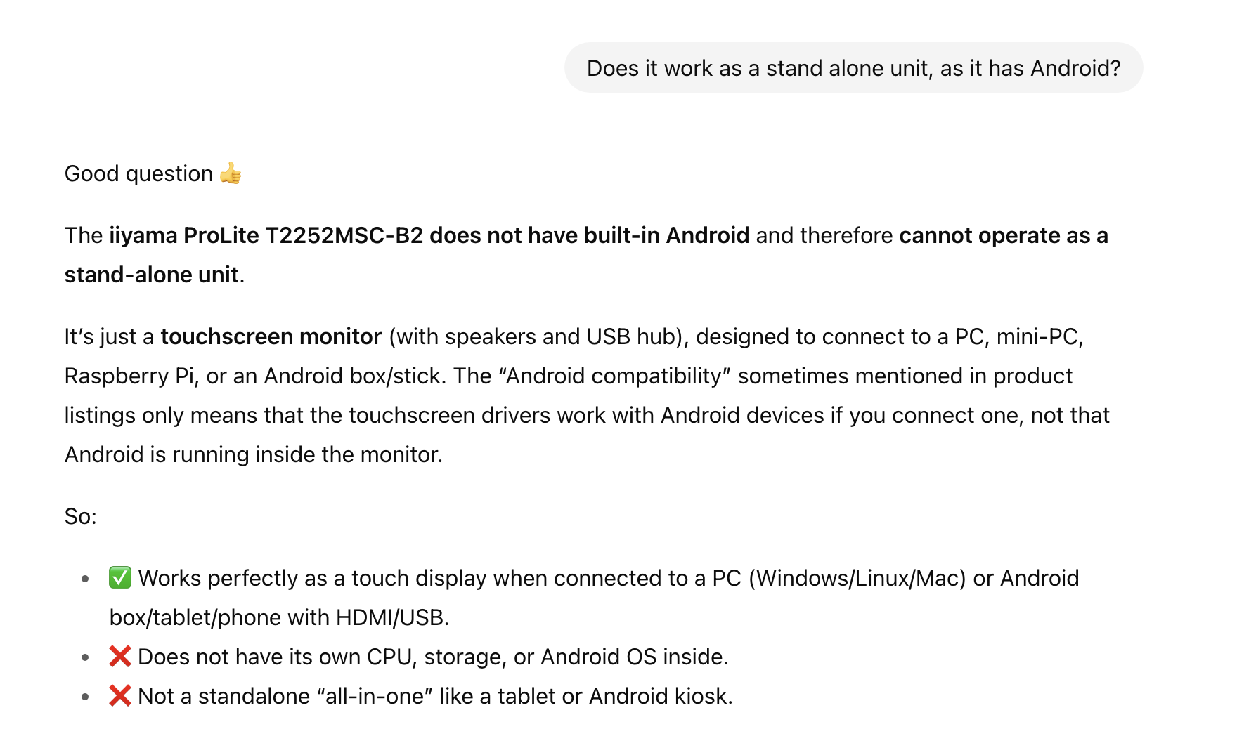iiyama all-in-one touchscreen with build in Android T2252MSC-B2