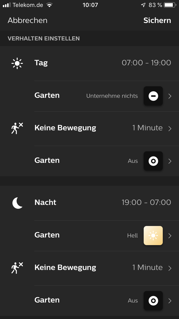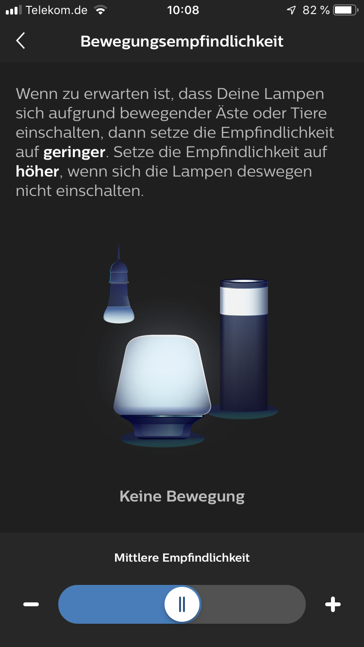 Einstellen kann man sowohl die Tageslichtempfindlichkeit, als auch die Bewegungsempfindlichkeit.