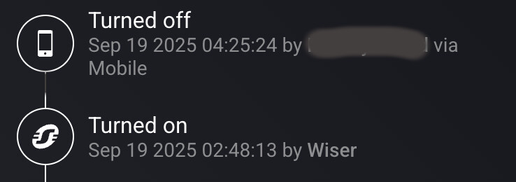 The lamps are seemingly random (the combination does not match anything from any flow or groupings in any sense), some top floor some bottom floor. Common is that they all activate at the same time and in the device logs they are activated by the “app”. Like for the Wiser lamps they show up as if I turned them on with the physical button, same for the Hue lamps (the logs show they where activated by “Philips hue”. See shots below (or shot, sorry as new user I can only embed one). If this was from a flow the flow name always appear, and of course manual control from apps or so shows who did it.
