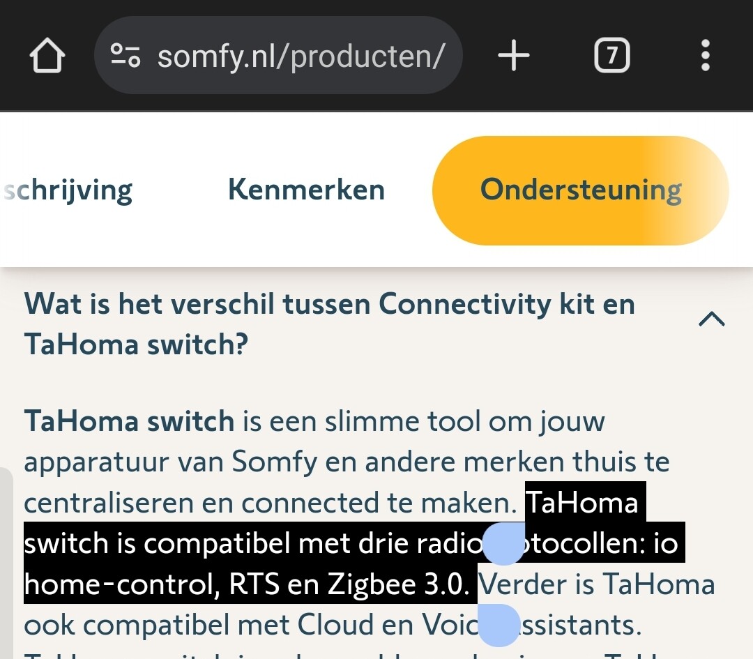 (Sorry, couldn’t get English specs, but it says: “Tahoma and Connectivity Box both support io as well as RTS, and Tahoma also Zigbee 3.0)”