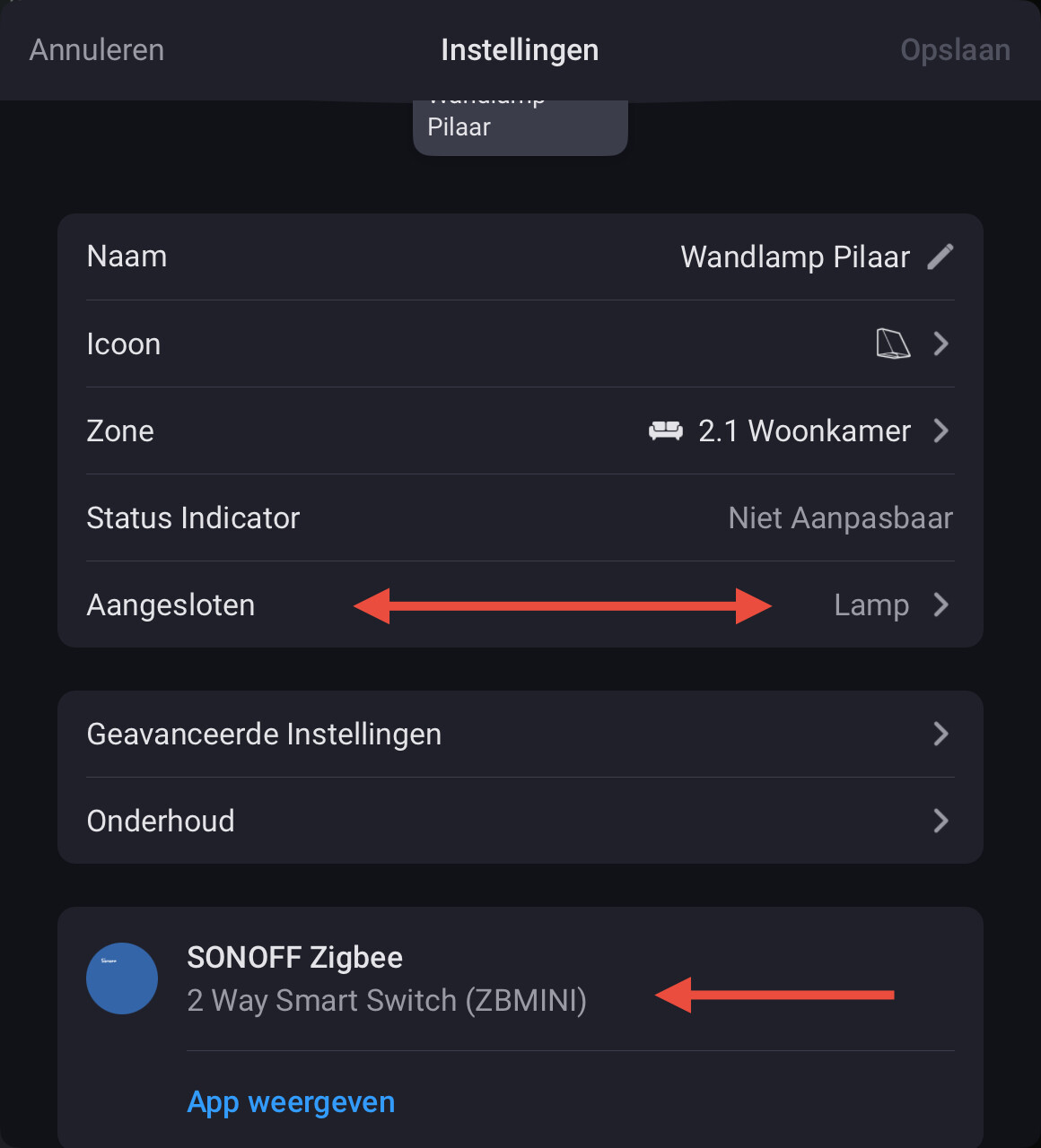 In my case I see a slightly different device name: 2 Way Smart Switch (ZBMINI). I don’t see that in your case. Not sure whether you are using a different version of the SONOFF Zigbee app? I am using v0.0.43 (test version). I am also able to change the type of connected device.