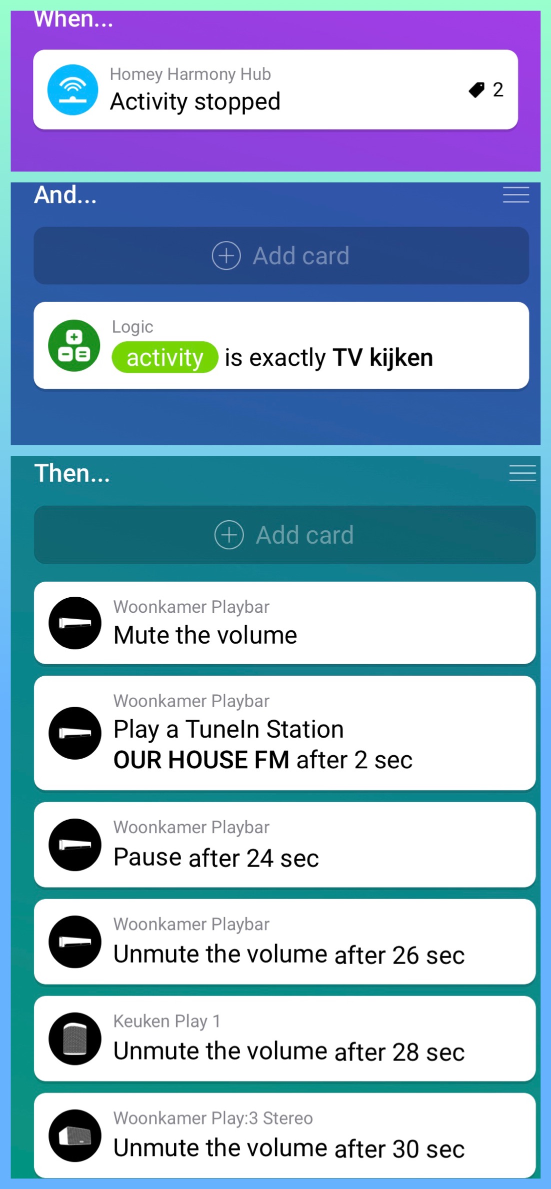 A flow that triggers every 5 seconds (during evening only). That updates 2booleans. 1 for the Sonos beam, the other for the kitchen.