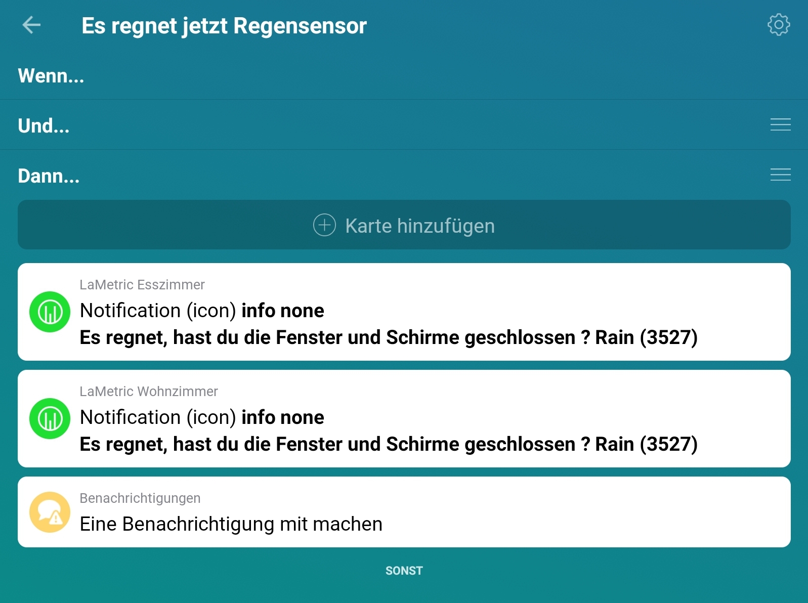 Wie sieht denn dein Flow aus, damit du benachrichtigt wirst, das es regnet?