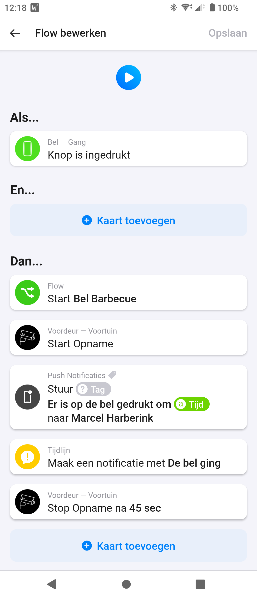 Ik heb een flow waarbij ik als er op de bel gedrukt werd ik een push notificatie kreeg met een snapshot van de voordeur camera.
