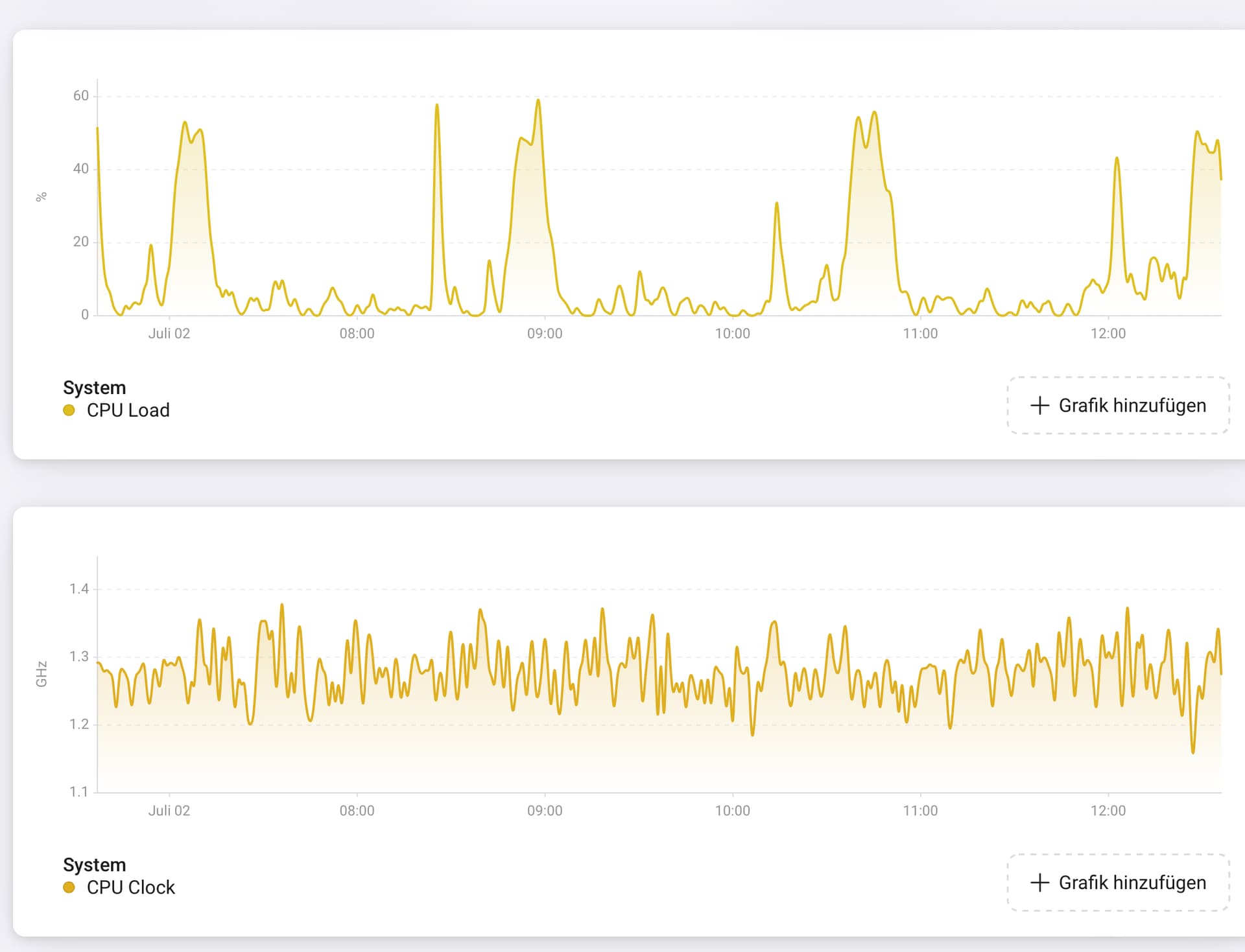 Homey: In welchem Bereich liegt die Durchschnittslast vom Homey? Am besten in der WebApp im Bereich Einblicke unter System nachschauen.