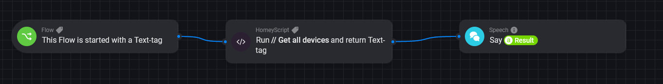 Trigger: Start this flow. ->When sensor1 on → Then TTS: “Sensor1”.