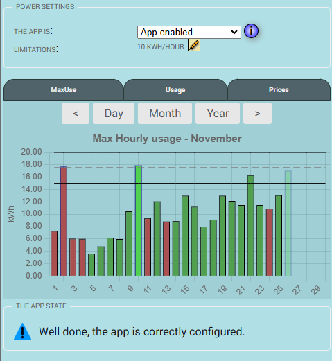And the Piggy Bank app app can automatically shut down preferred devices when a certain level is reached, to have the 3 biggest power peaks as low as possible.