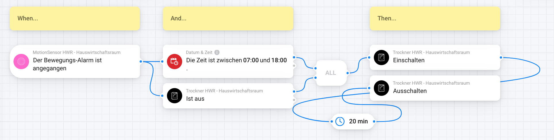 Within this time slot and the ventilation is off and the motion sensor is triggered then activate the ventilation for 20 min then off.