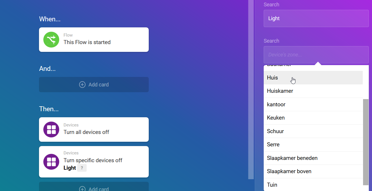 How Do I make a flow which turn off all chosen devices when I press the flow-button?