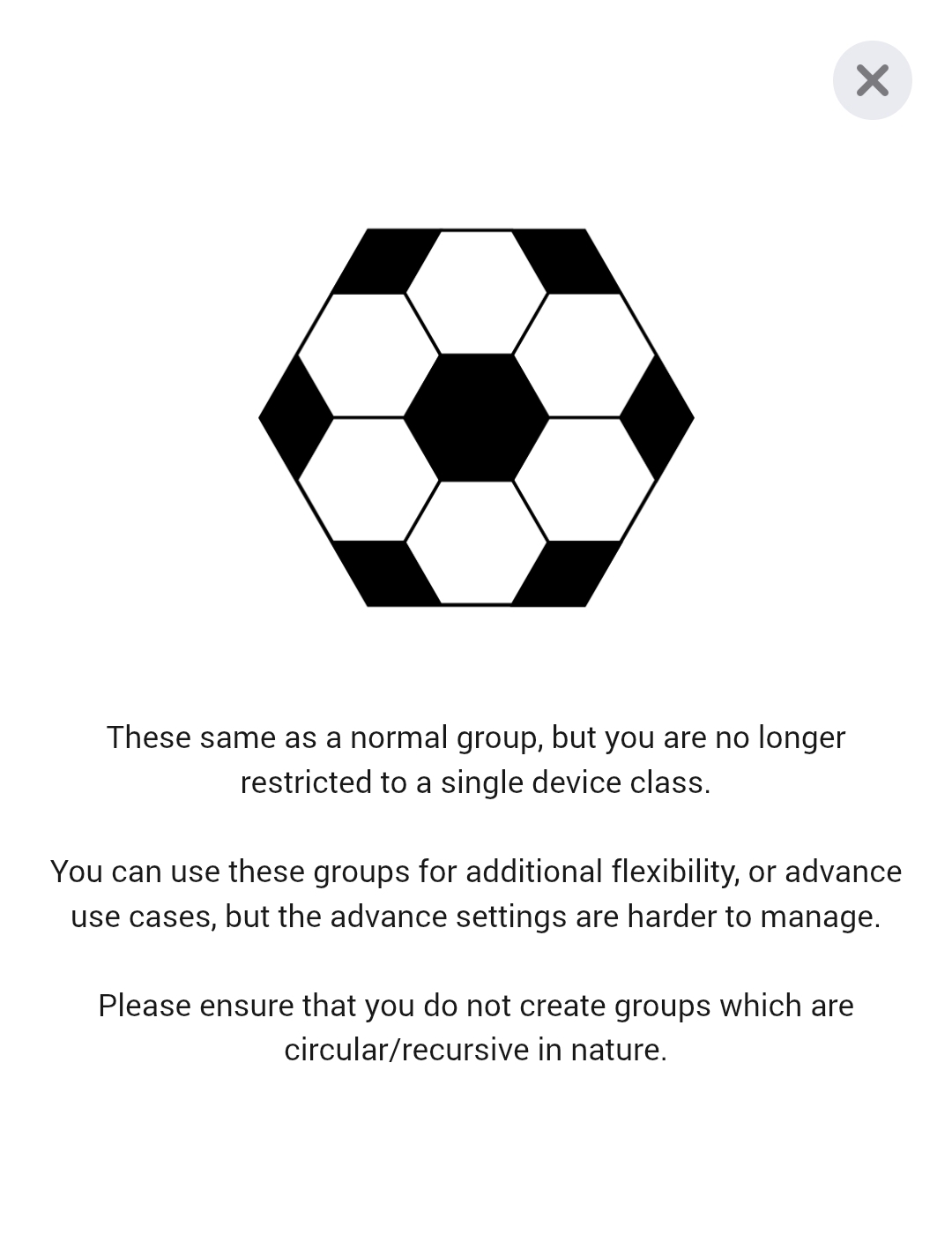 The descriptions are a bit hidden; after starting to add a United group for instance, a description is shown