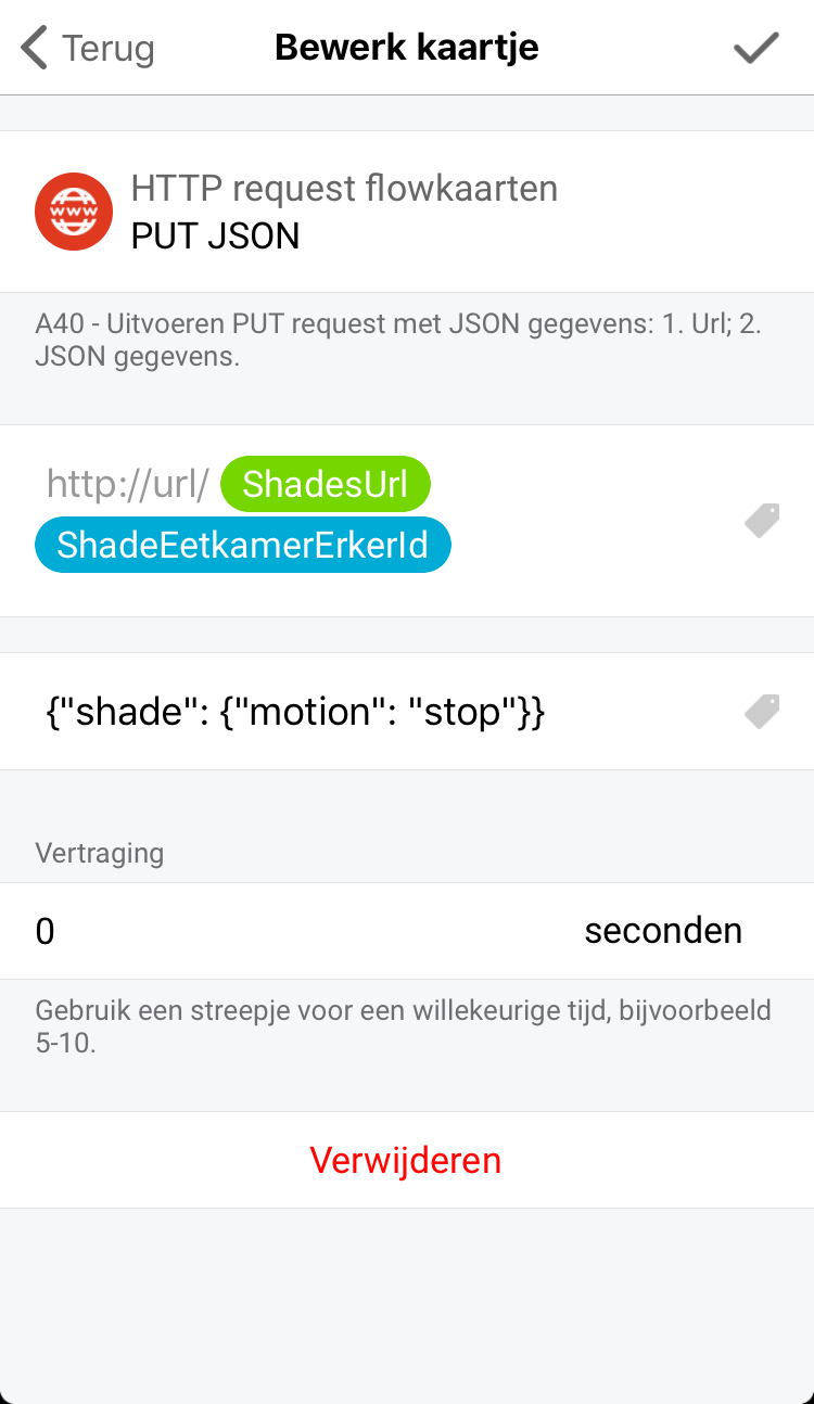 Create a new flow as below, which is named ShadeEetkamerErkerStop in my case.