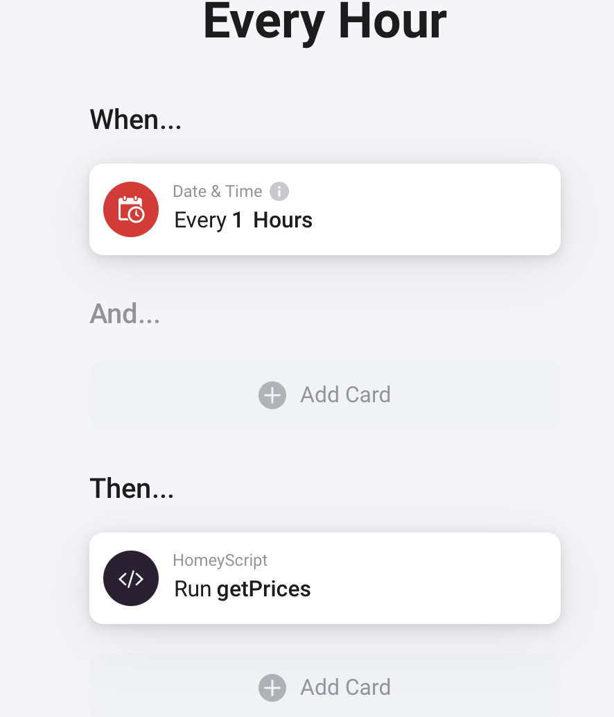 Script is looking for lowest and highest prices of the day and update 4 variables (they’re needed to be created in advance), two of them yes/no variables to indicate if price is highest/lowest for current hour, the other two contains exact price values for highest and lowest number for current day. Script returns in console summary details on what it did, parsed etc and it runs for every hour with a flow. It has some error handling, some tricks I had to apply in order to teach chatGPT how to make it correct, e.g. finding relevant current time with Homey and use variables etc.
