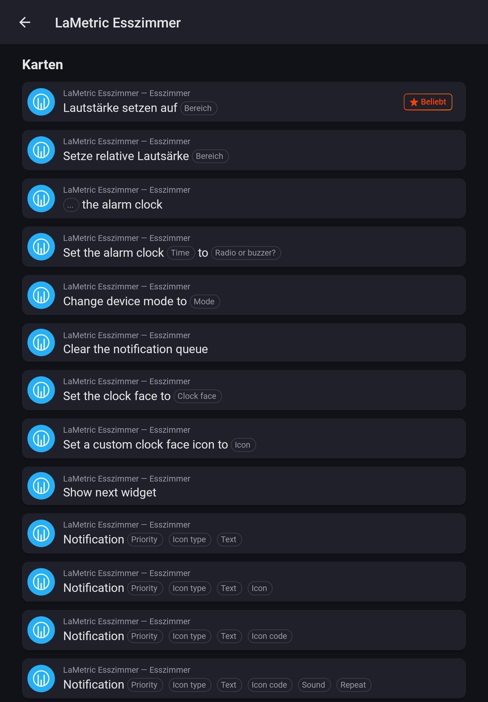 Im Vergleich zur LaMetric Community App, welche nur die LaMetric Time unterstützt, hat die Hersteller-App aber deutlich weniger Aktionkarten, zumindest im App Store. Es könnte allerdings sein, dass einige Karten im App Store nicht angezeigt werden.