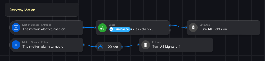 Despite all this, if there IS motion, the lights do not turn on. I tried a flow where “If motion, dim to 100%” Trying in zone active…" as well but no luck. Anyone have experience working with the motion sensor? Any help appreciated.