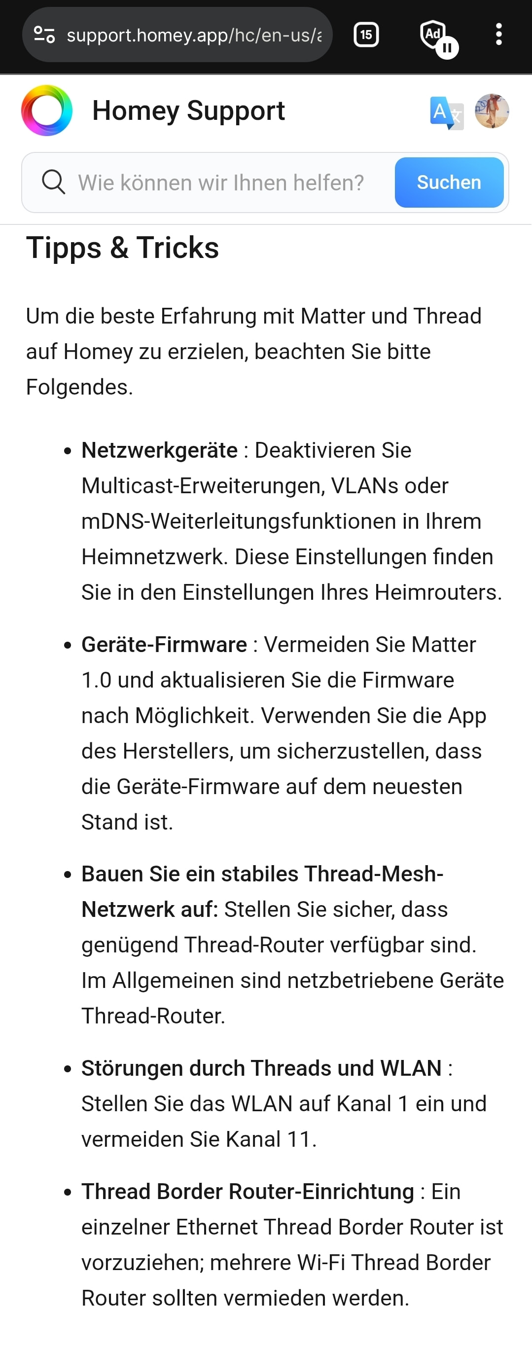 Darüber hinaus gilt für ein stabiles Mesh-Netzwerk für Thread dasselbe wie für Zigbee: Sorg für genügend Thread-Router; außerdem kann das Signal durch 2,4-GHz-WLAN-Signale gestört werden.