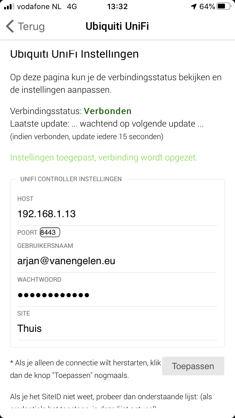 zo juist de Unifi-app toegevoegd en inglogd.