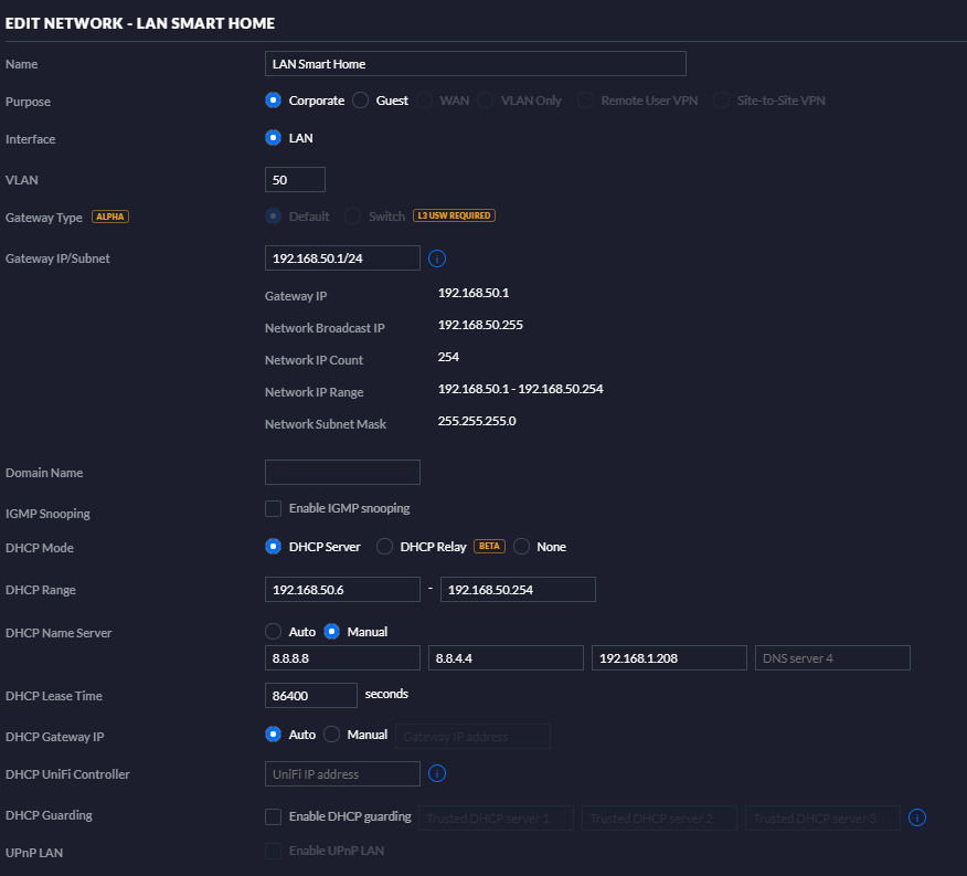 Ich habe ja selber mehrere Netze angelegt. Du darfst dann halt nicht vergessen, dass die .1 Adresse immer das Gateway des Netzes ist, also im Prinzip ne weitere IP für die Dream Machine.