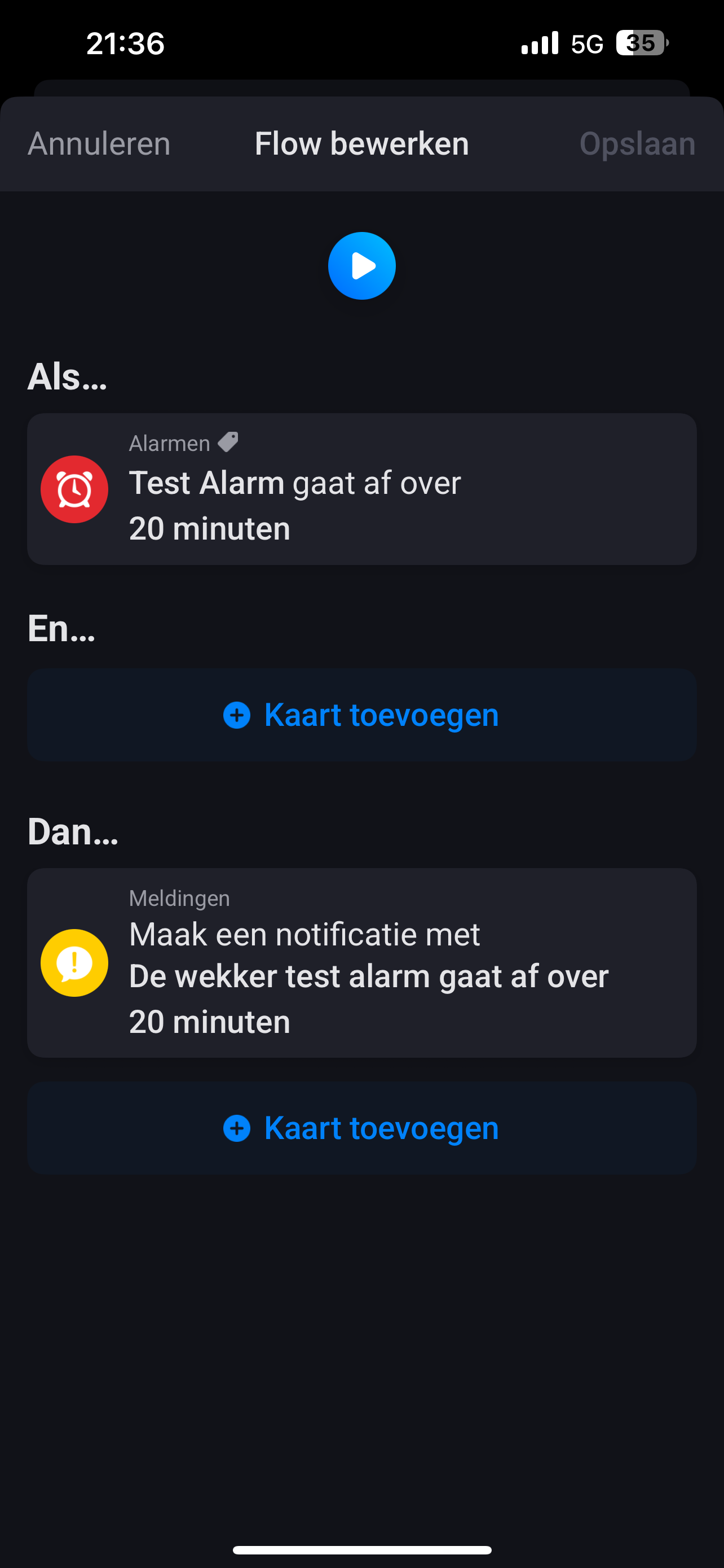 Can you please try the other flow card as well? If the changed flows work, then itâs most likely due to the âin 5 minutesâ alarm flow card, and you/we should report this bug to Athom Support.