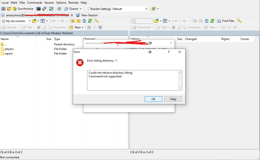 i am able to connect to the server but i cant open folders and create or copy any files to the server