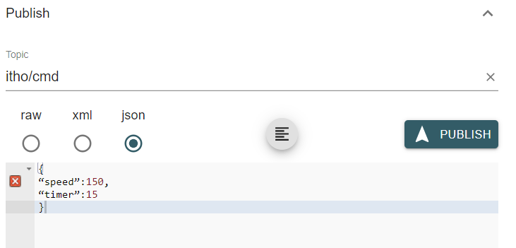 Als ik dit commando { “speed”:250, “timer”:15 } geef in MQTT Explorer op het topic Itho/cmd