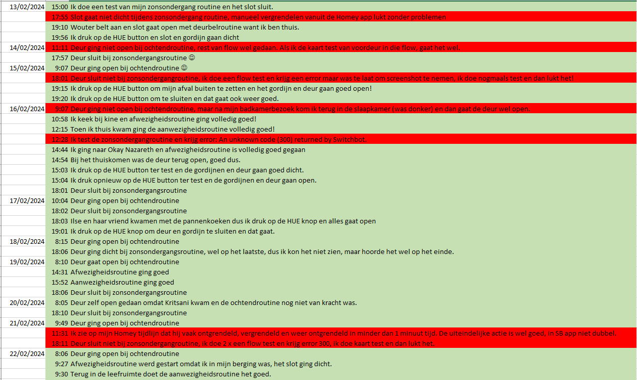 Ondanks de developer mode en upgrade naar HUB2, doet hij het te vaak niet. Ik hield een log bij en als ik reken sedert de nieuwe HUB dan doet hij het 16% van de tijd niet, er is geen patroon in te vinden, soms is het 2x na elkaar, een andere keer gaat het 10x goed. Als foutmelding in de Switchbot app staat “Failed to execute”. Ik woon op een klein oppervlak van 94m², waar de Homey echt centraal staat. Switchbot verwijst me door naar Homey, ik zal daar nog eens poging wagen, maar mochten er in tussentijd hier nog mensen een oplossing kennen, hoor ik dat graag. Bedankt ![]()