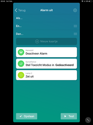 Als ik het alarm deactiveer met de knop dan krijg ik de melding: